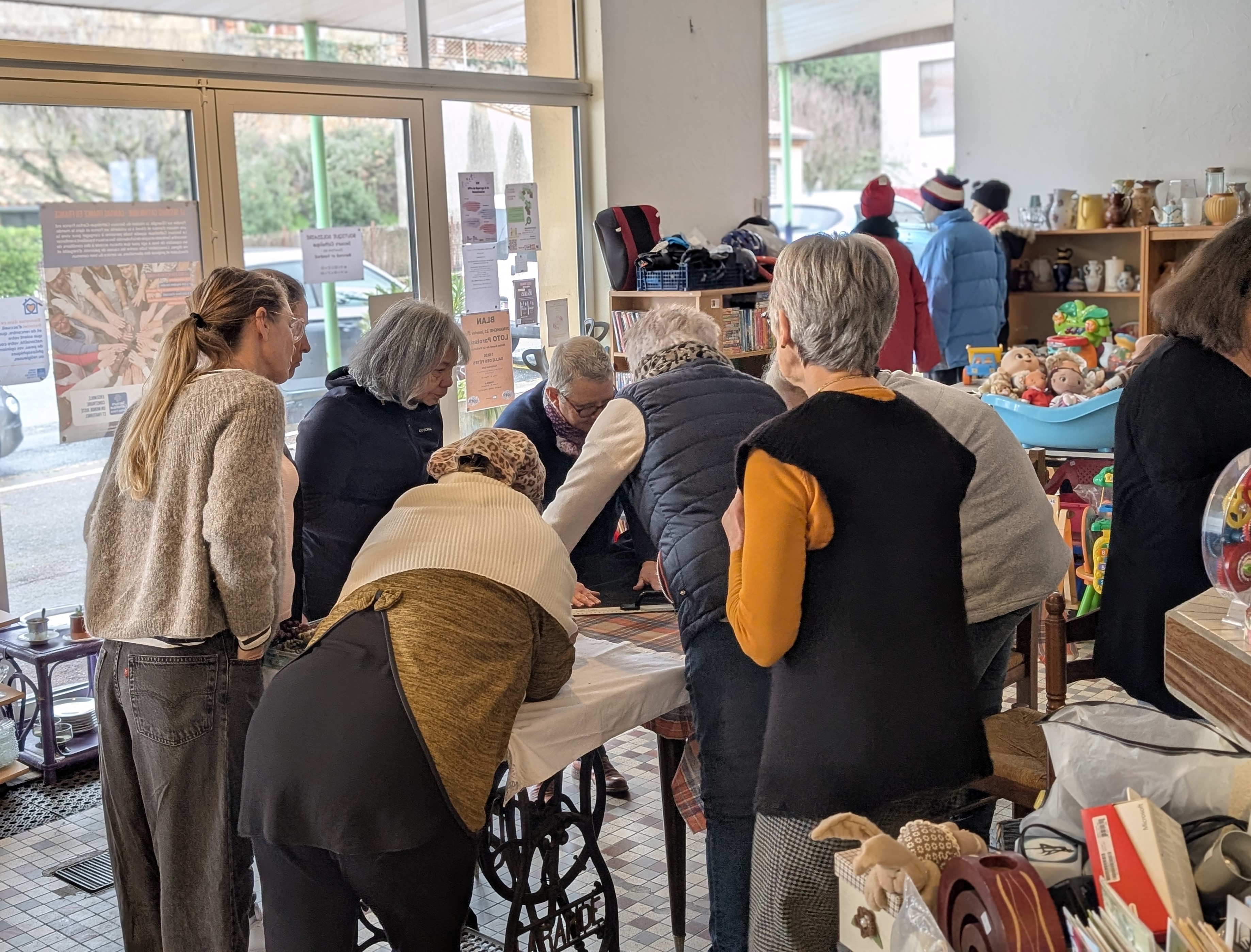 Je viens de passer une heure trente avec les participantes de l’atelier couture du Secours Catholique de Puylaurens. Nous sommes mardi 20 janvier, il est 14h quand ça commence.